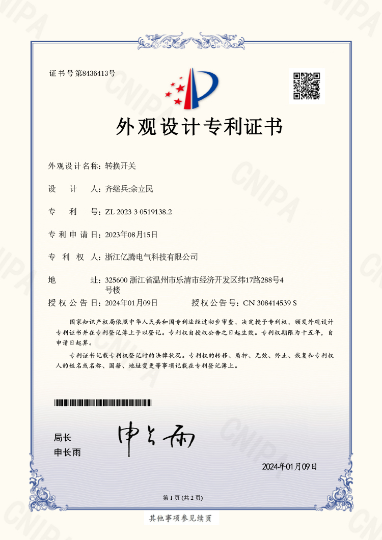 億騰電氣目前已獲得“國家高新技術企業”、“綠色工廠”、“職業技能等級認定試點企業”等眾多榮譽稱號。公司通過ISO9001質量管理體系和環境管理體系等認證。為了滿足客戶更安全更可靠的產品需求,現已建設自主低壓電氣檢測中心,其試驗項目大部分能滿足國家GB標準和國際IEC標準的要求。產品以可靠的品質獲得國家CCC和國際CB、TUV、VDE、CE、RoHS環保等質量認證。